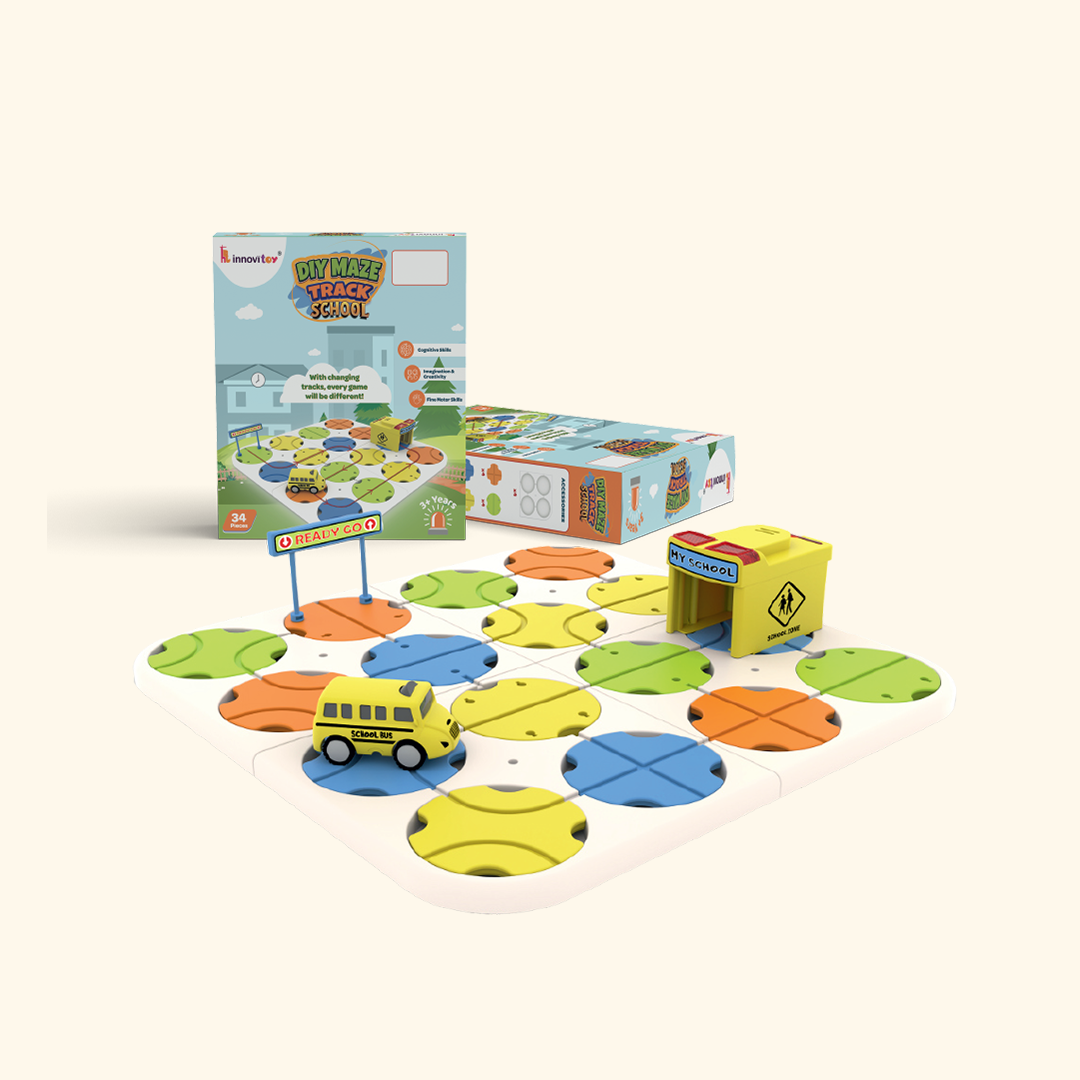 A twist-to-change track that turns every ride into a new puzzle. Kids rotate the tiles, build their own route, and steer the school bus to the finish. Fast to set up, fun to replay, zero boredom.