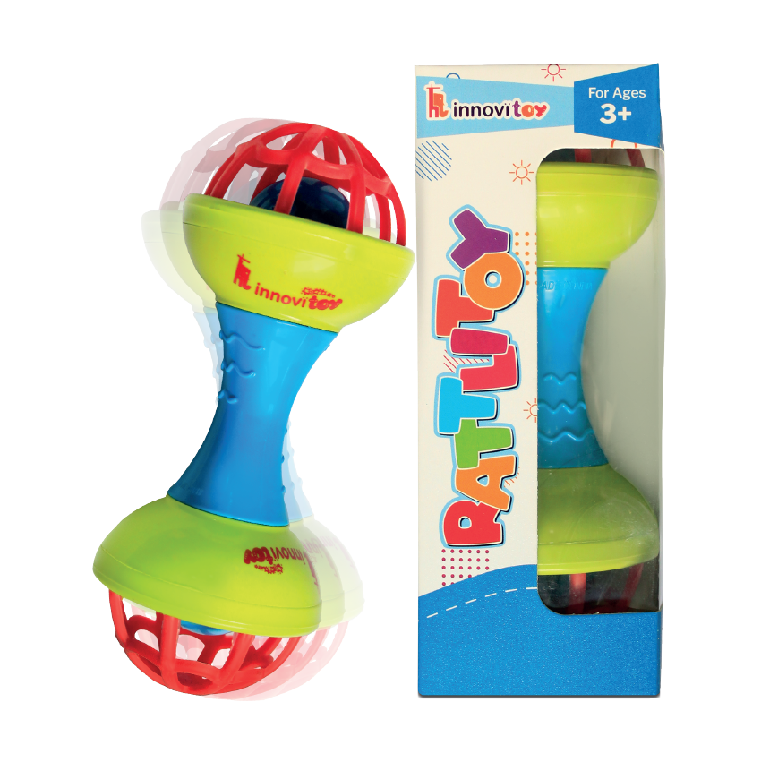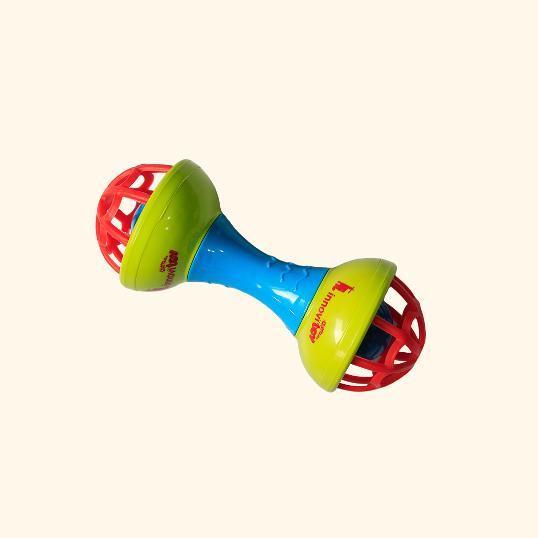 A fun, colorful dumbbell-shaped rattle that’s easy to grab and exciting to shake! Perfect for tiny hands discovering sound and motion.