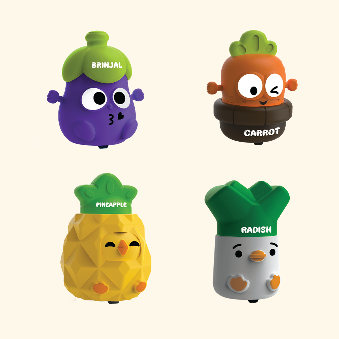 Cute, quirky, and full of bounce—these Veggie Runners zoom into playtime with silly faces and endless fun!
